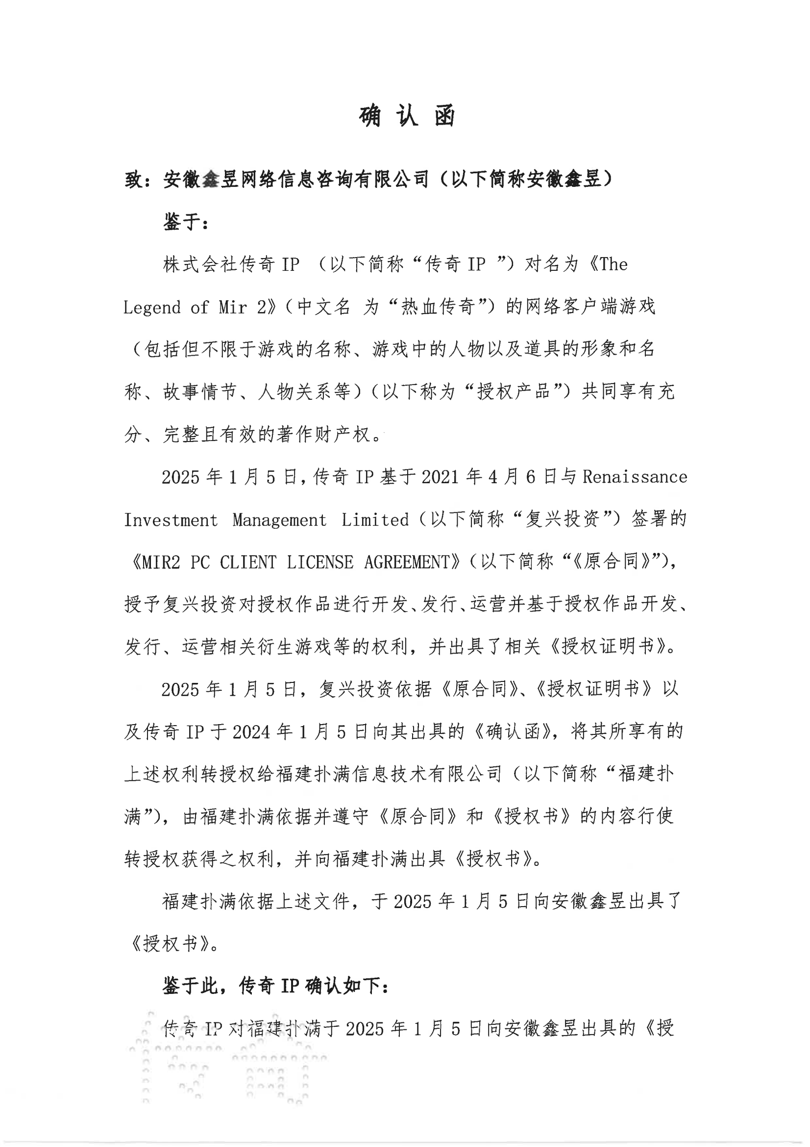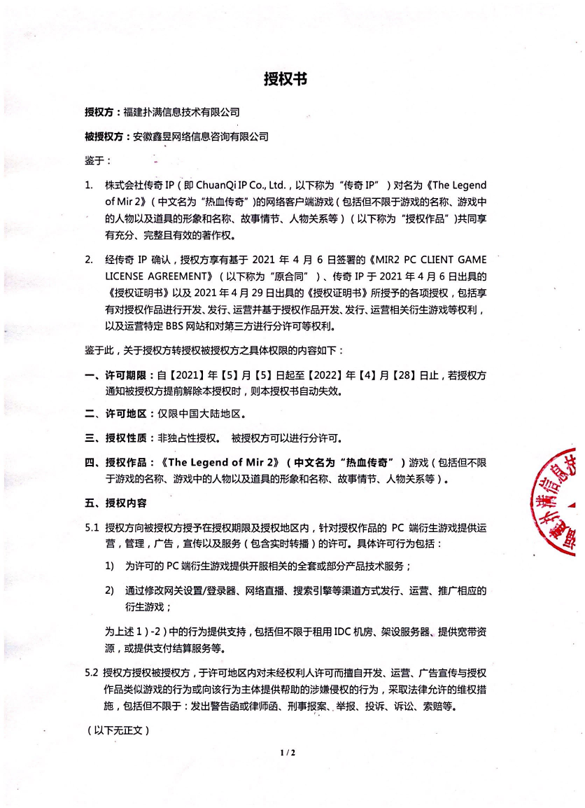 關(guān)于對(duì)《The Legend of Mir 2》(熱血傳奇) 衍生品游戲直播的嚴(yán)正聲明